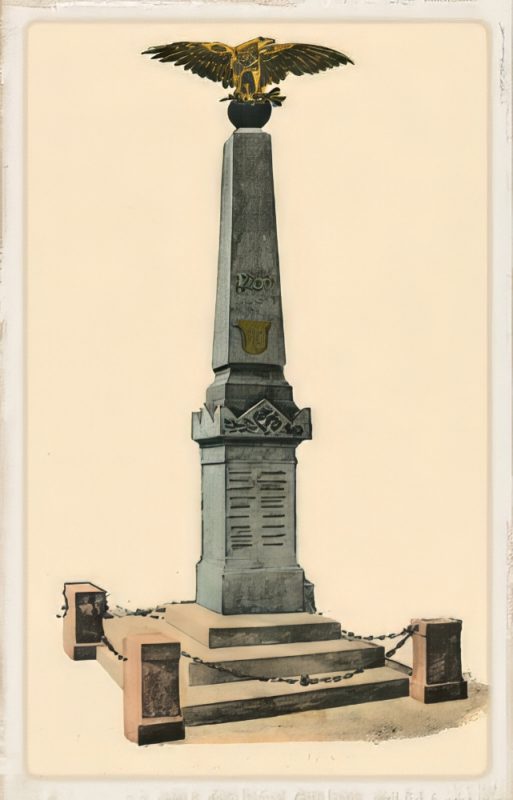 Nach einem Umzug einer Infanterie-Kapelle nebst vielen Kriegsabordnungen durch die geschmückten Dorfstraßen kam es am Sonntag, dem 2. Juni 1901, zur feierlichen Einweihung. Zum Weiheakt hatten sich alle Krieger von 1870/71 versammelt und nach einem „schmissigen Marsch“ fiel die Hülle. Ein Marmorobelisk mit einem aufgesetzten und grimmig nach Westen spähenden Adler kam zum Vorschein. Im Rahmen eines Konzerts wurde der gesamte Krieg in 21 Etappen nachgestellt. Abends gab es in allen Tanzsälen rauschende Bälle und zu mitternächtlicher Stunde ein Brillantfeuerwerk.