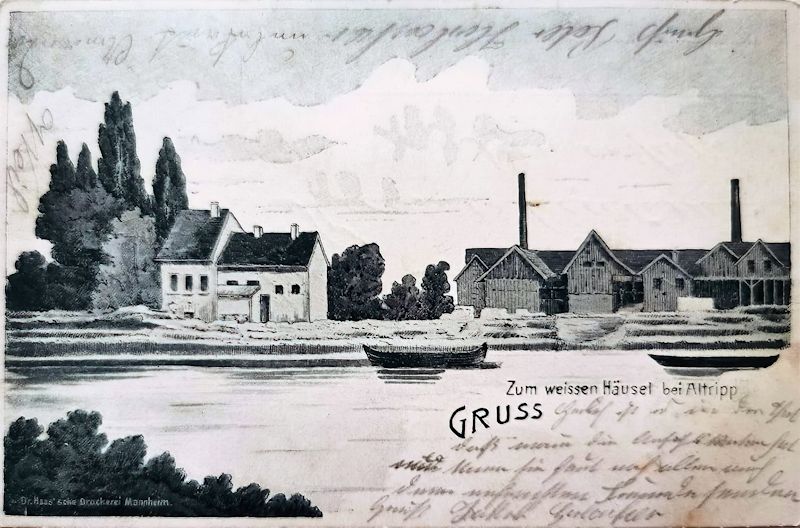 Postkarte aus den 1920er Jahren: Werk Rheingönheim der Ziegelei-Marx, links daneben die Kantine, das heutige Gasthaus „Weißes Häusl”.Im Jahr 1901 wurden die einzigen katholischen Volksschulkinder in Altrip, die im „Weißen Häusl“ auf Rheingönheimer Gemarkung wohnten, per Gemeinderatsbeschluss nach Rheingönheim „ausgewiesen“.
