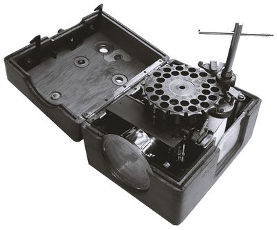 Konstatieruhr der Firma Benzing (~1930)Gemeint sind hier nicht die Hundertschaften, insbesondere in den Städten, sondern ihre Rassen. Über 800 Taubenarten sind bekannt. Einige Rassen davon eignen sich besonders gut als Brief- oder Sporttauben und zu Wettflugeinsätzen. Dank ihres Orientierungssinns sind überhaupt Wettflüge möglich und diese wiederum haben zur Erfindung der „Brieftauben-Flugwettbewerbs-Konstatierapparate”, kurz Brieftaubenuhren, geführt. Schon im Jahr 1934 legte sich in Altrip Karl Weber, der im Ort als „Fahrrad-Mayer” bekannt war und auch eine der ersten Tankstellen unterhielt, für seine Tauben eine spezielle Brieftaubenuhr der spezialisierten Firma Benzing aus Schwenningen zu.