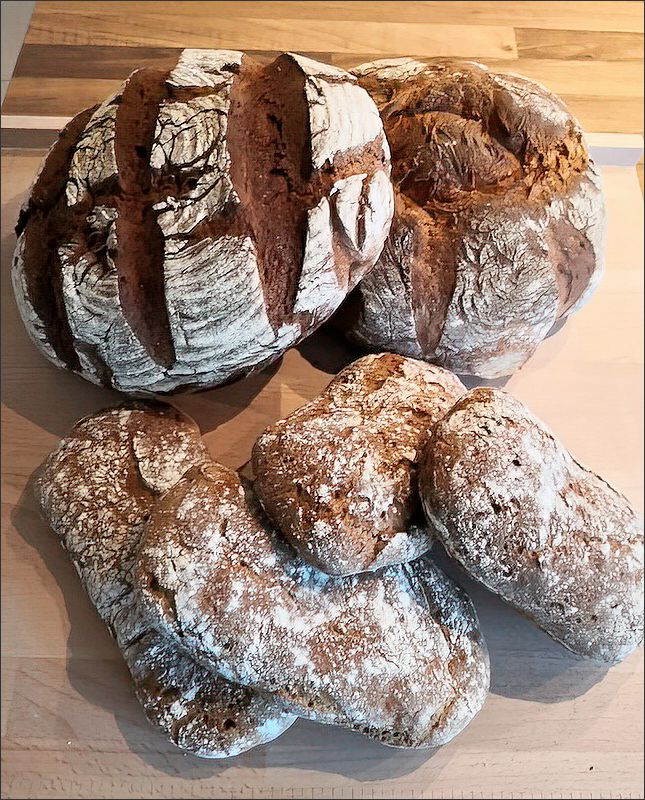 Unter fachkundiger Anleitung von Jupp Settele und Doris Mansky wurden über den Tag verteilt, drei verschiedene Brote hergestellt und im Backhaus gebacken. Den Anfang machte ein Brot mit Ruchmehl, gefolgt von Vinschgauer Paarlen und zum Abschluss ein traditionelles Roggenmischbrot.