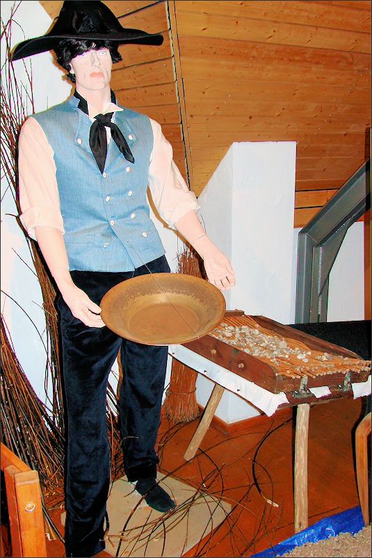 Eine Waschbank eines Goldwäschers samt Leihgegenständen aus Speyer über den letzten Berufsgoldwäscher sowie das beschriebene Verfahren des Goldwaschens nötigten dem Betrachter Respekt ab. Ausgestellt waren auch echte Rheingoldmünzen.