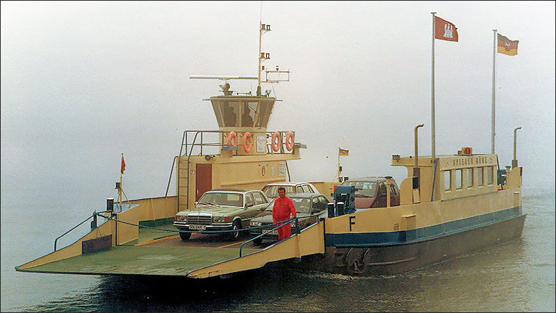 Und so kam es, dass der Kapitän und Schiffseigner Karl-Heinz Büchel aus Hamburg für seine „Fähr-Reederei Zollenspieker-Hoopte“ die Fähre erwarb. Doch bis es so weit war, musste er noch ein volles Jahr warten, denn die Anschaffung der neuen Altriper Großfähre zog sich hin.