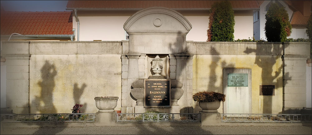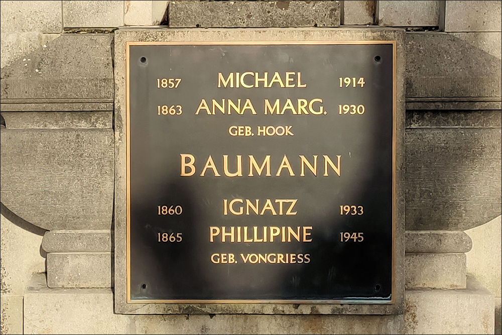 Auch Ignatz Baumann ruht in dieser auf die Fläche bezogen mit Abstand größten Grabanlage. Er war Bürgermeister in einer schweren Zeit, nämlich von 1915 bis 1919, also während des Ersten Weltkriegs und des Einmarschs der französischen Kolonialtruppen mit anschließender Besatzungszeit. Nach dem Tode seines Bruders Michael leitete er zusammen mit seinem Sohn und einem Neffen die Ziegelei, eine eigene Fabrikfeuerwehr sowie ein landwirtschaftliches Gut. Daneben schuf er eine vorbildliche Pappelanpflanzung, für die er den Titel eines Ökonomierates erhielt.