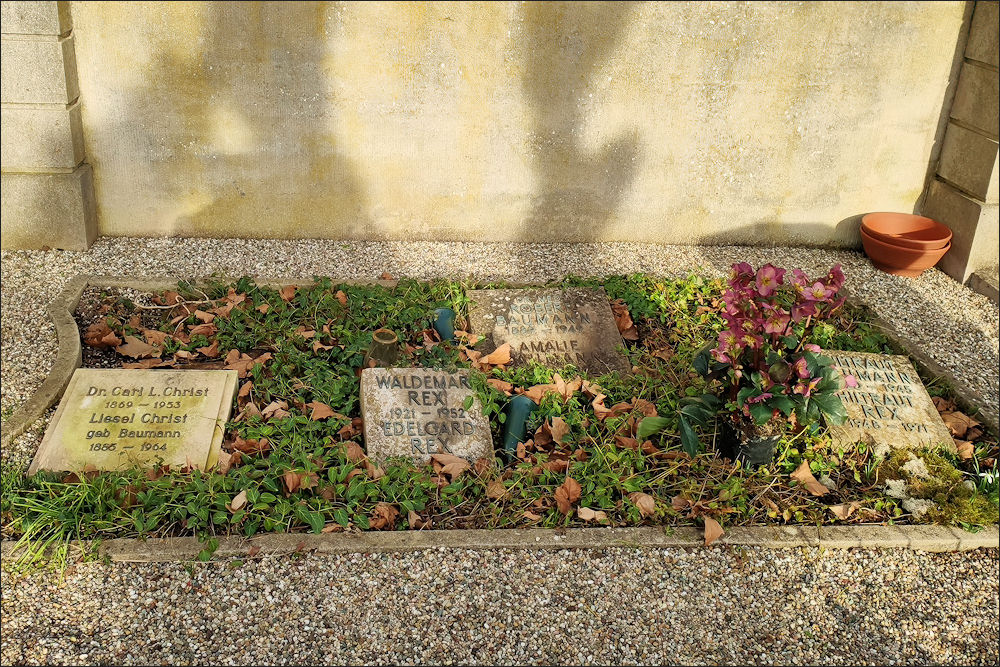 Seine Tochter Edelgard, die Gründerin des Altriper Rexhofes, die bei dem Versuch, ihre Hunde aus ihrem brennenden Haus zu retten, selbst ein Opfer der Flammen wurde, ist hier bestattet, ebenso wie ihr Mann Waldemar, der Vorsitzender des örtlichen Roten Kreuzes war und an einer Krankheit starb, die heute gut beherrschbar ist, nämlich an Spinaler Kinderlähmung. Und noch ein weiteres trauriges Schicksal verbirgt sich hinter einem kleinen Täfelchen. Eine Tochter von Edelgard Rex, Hiltraut, starb mit 23 Jahren an den Folgen eines Verkehrsunfalls.