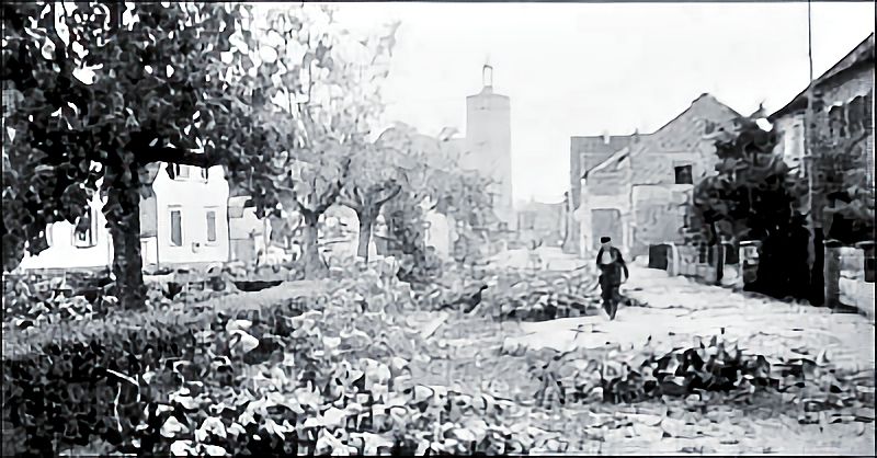 Nach dem Unwetter vom 6. August 1954 am Karl-Marx-Platz in Altrip.