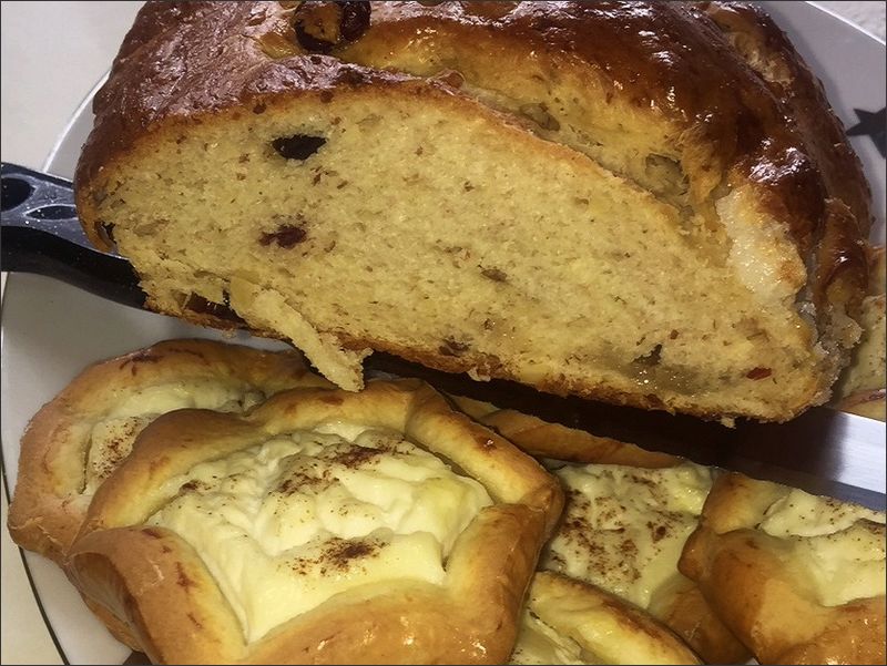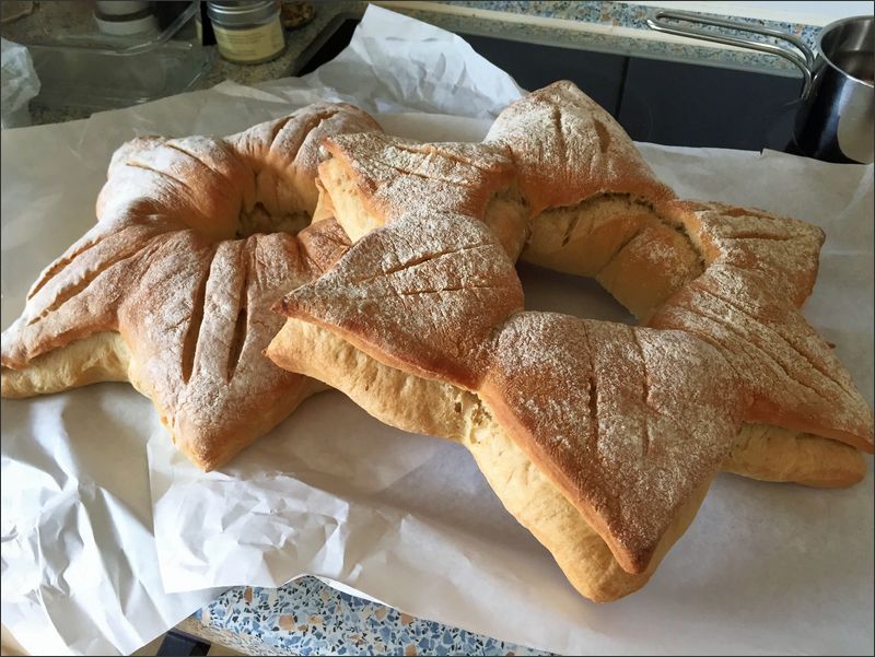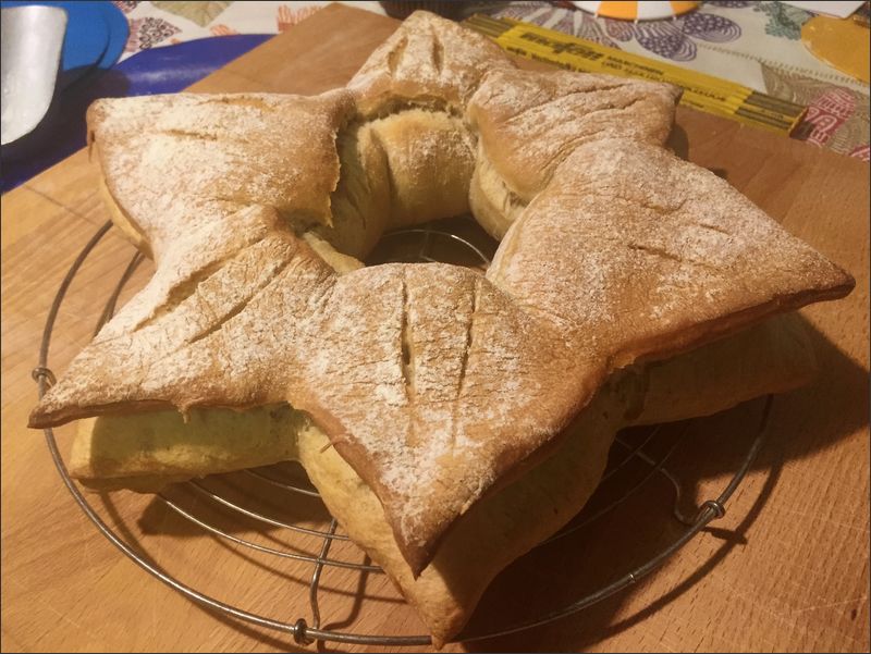 Aber so leicht geben die Altriper ja bekanntlich nichts auf! Und so wurde die Idee vom „WhatsApp-Backtag“ geboren: Alle Teilnehmer backen gemeinsam, aber doch jeder für sich zu Hause im eigenen Backofen. Im Vorfeld wird verabredet, was genau an diesem Tag gebacken werden soll. So war es bei einem Testlauf ein dekoratives Sternbrot, das gebacken wurde und auf der Tagesordnung für den Ostersamstag standen Aachener Poschweck (Osterbrot) sowie ein Ostergebäck aus Kreta.